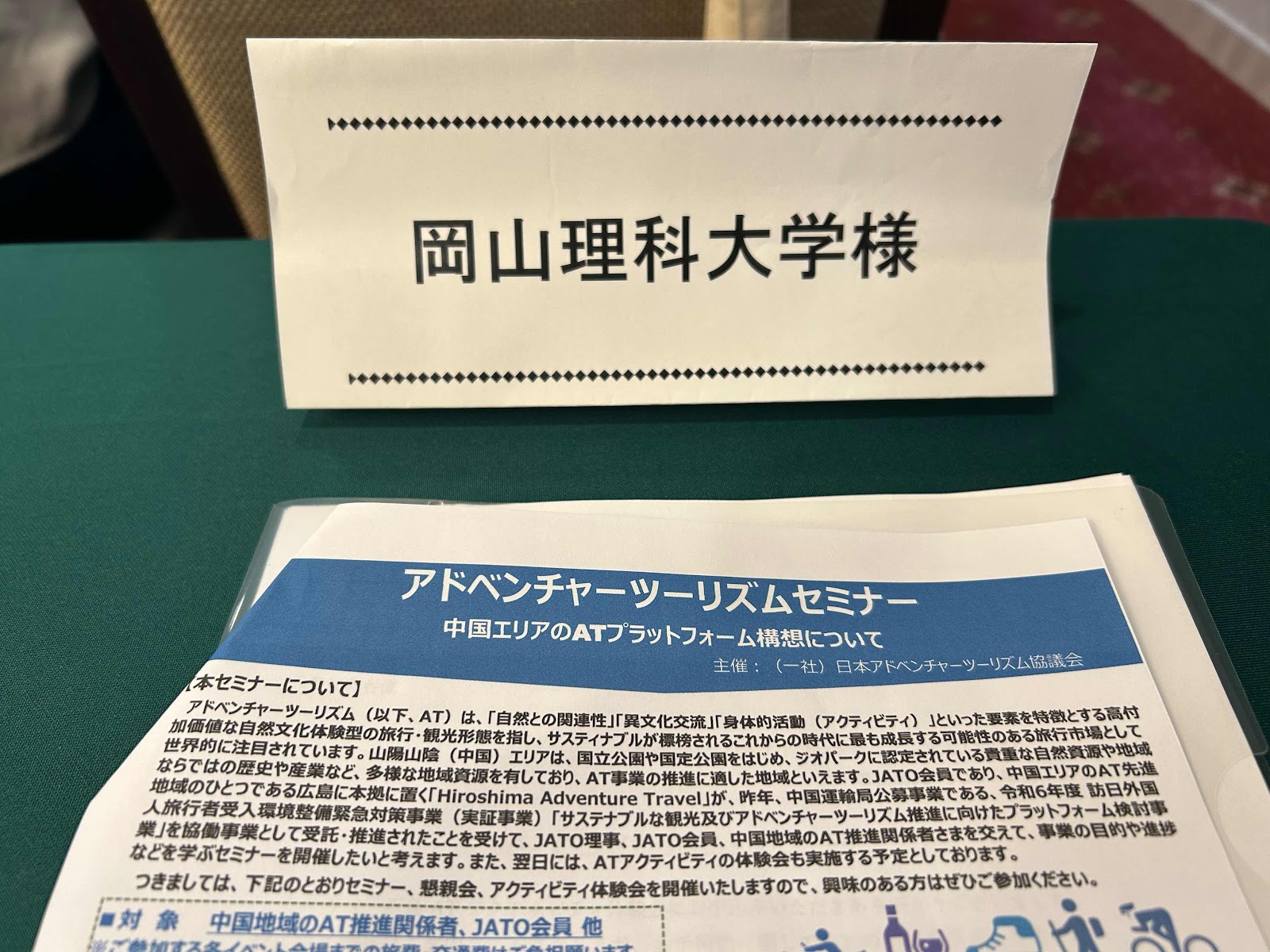 午後二はリーガロイヤルホテル広島で開催される『アドベンチャーツーリズムセミナー〜中国エリアのATプラットフォーム構想について〜』に参加!