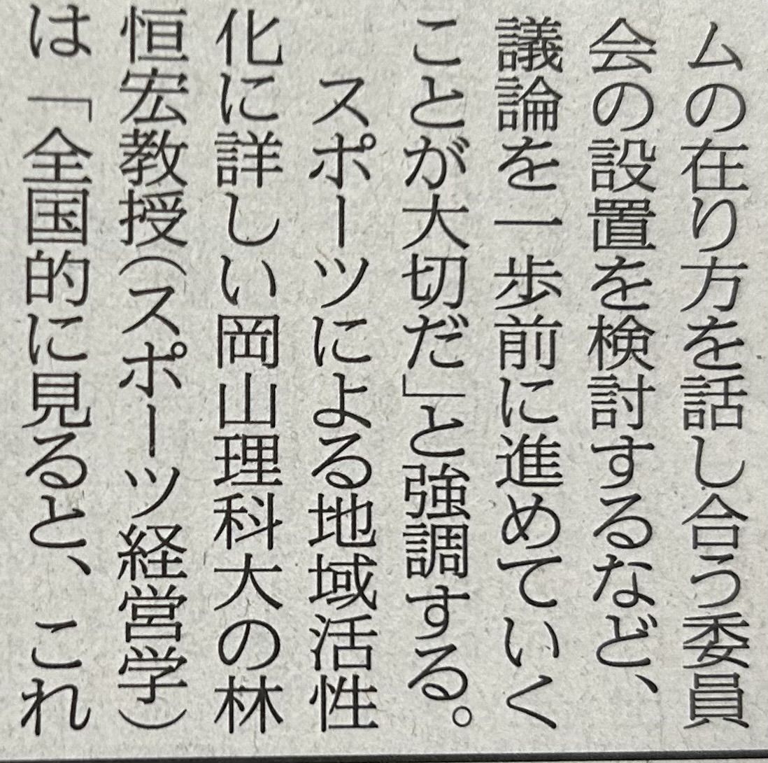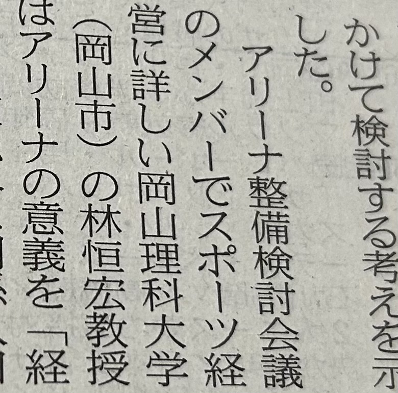 本日の山陽新聞に岡山におけるスタジアム建設についてのコメントが掲載されました。